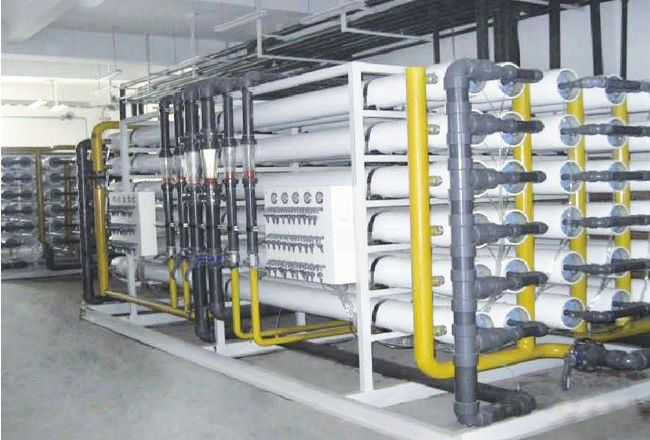 设备流程:原水→多介质过滤器→活性炭过滤器→精密过滤器→中间水箱→一级反渗透设备→ →纯水储水箱 →纯水增压泵→