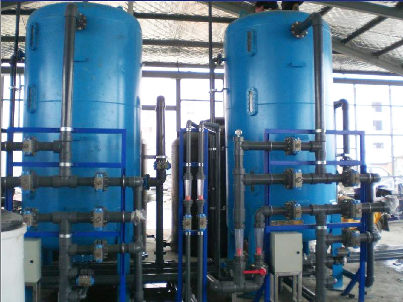 设备流程:原水→多介质过滤器→活性炭过滤器→精密过滤器→中间水箱→一级反渗透设备→纯水储水箱 →纯水增压泵→
