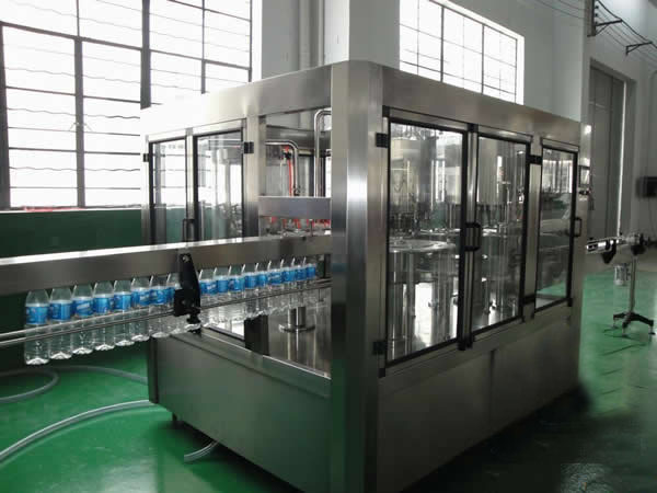 纯水储水箱 →臭氧杀菌系统→纯水增压泵→自动灌装线